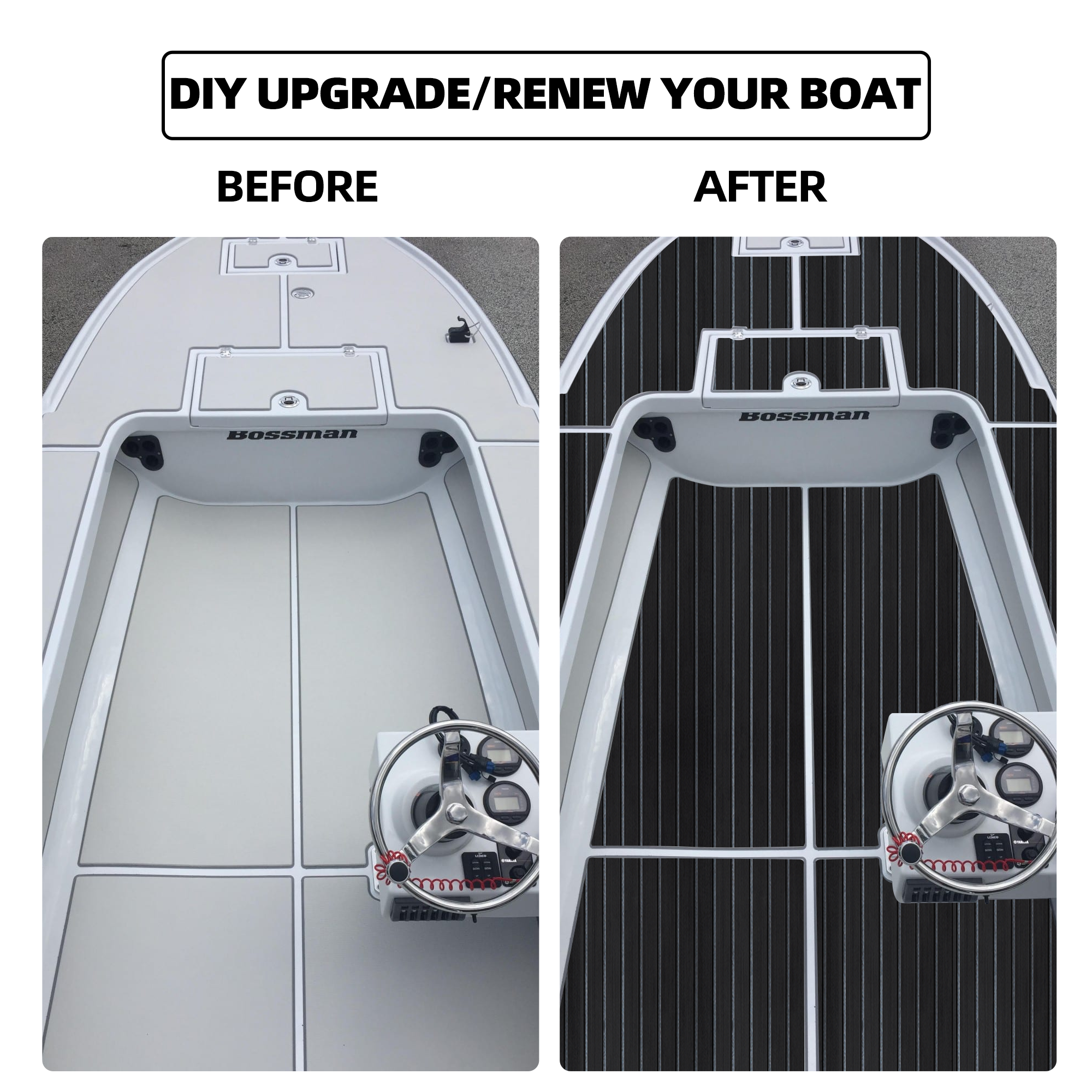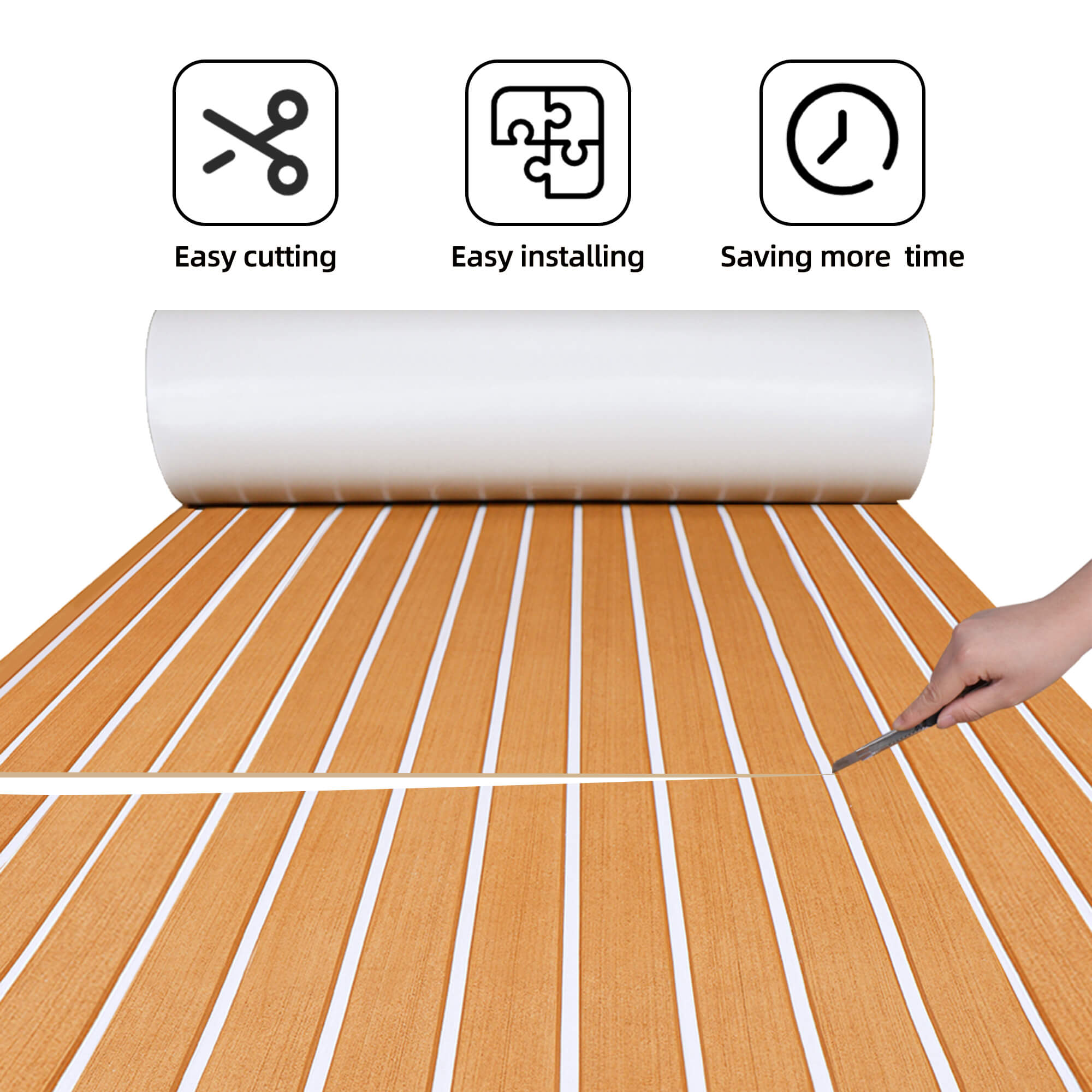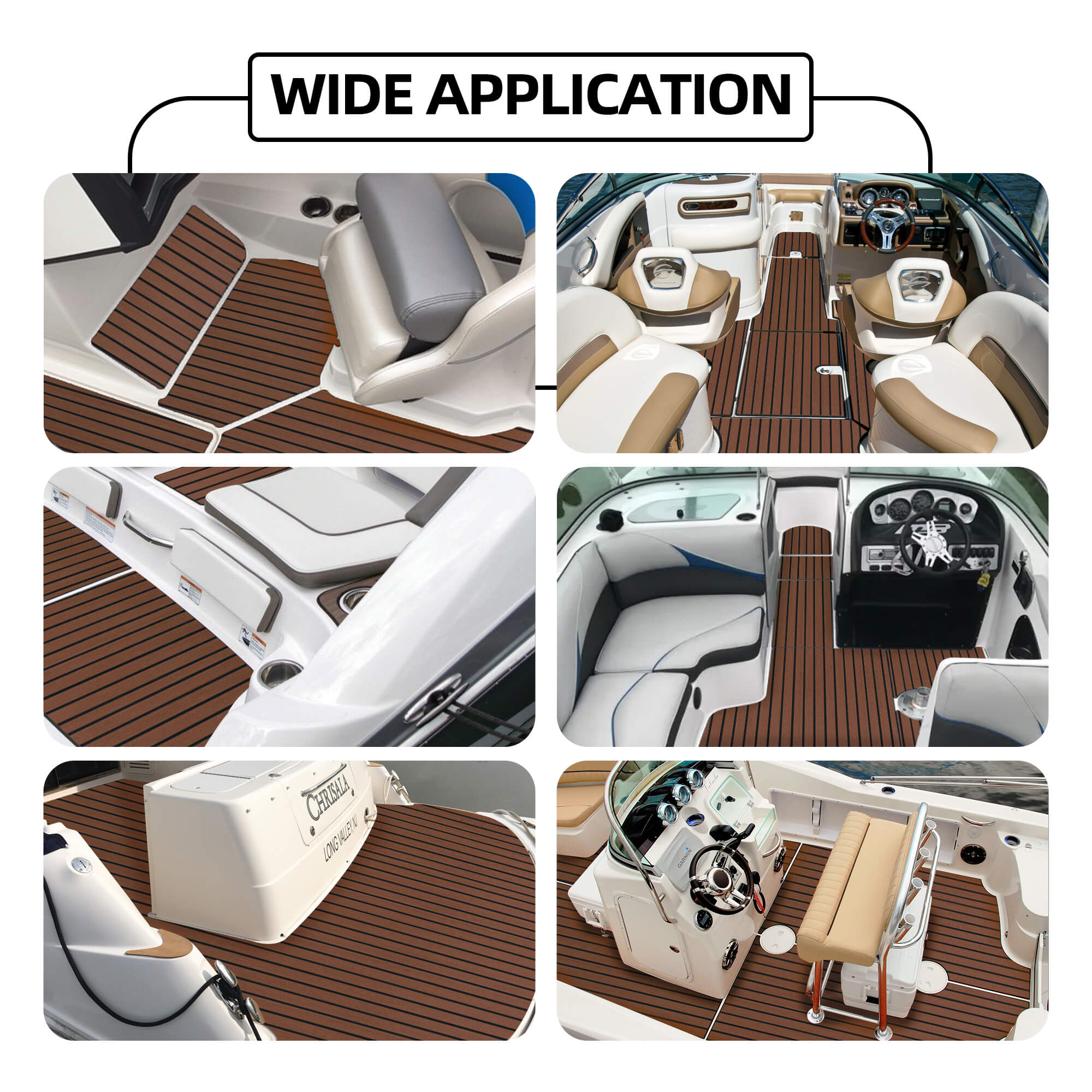 - Wide Application - Very nice faux teak boat flooring, different colorful patterns available. They are perfectly used for Motorboat, Jon Boat, RV Yacht Kayak, Surfboard, Swimming Pool, Garden flooring and other boat decking