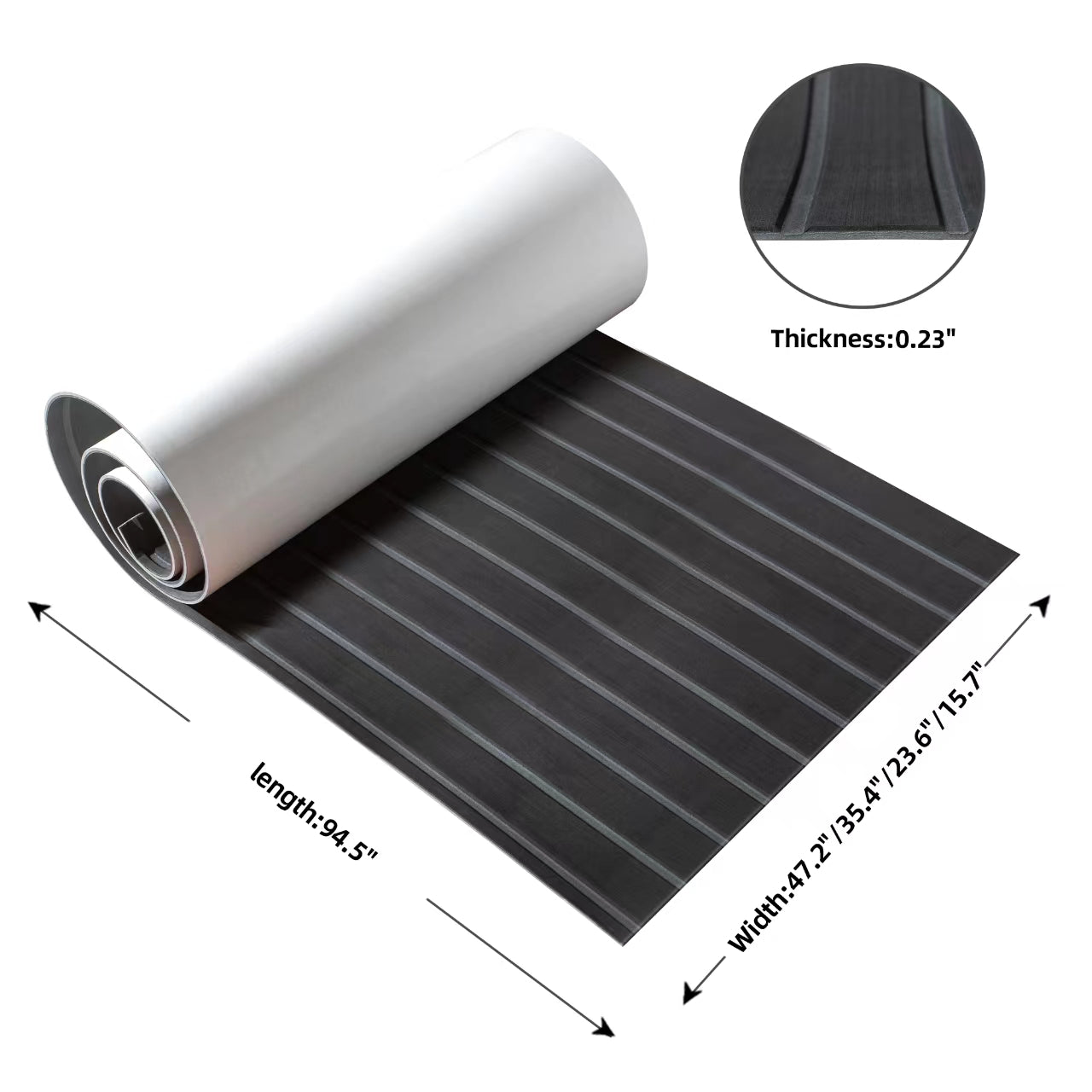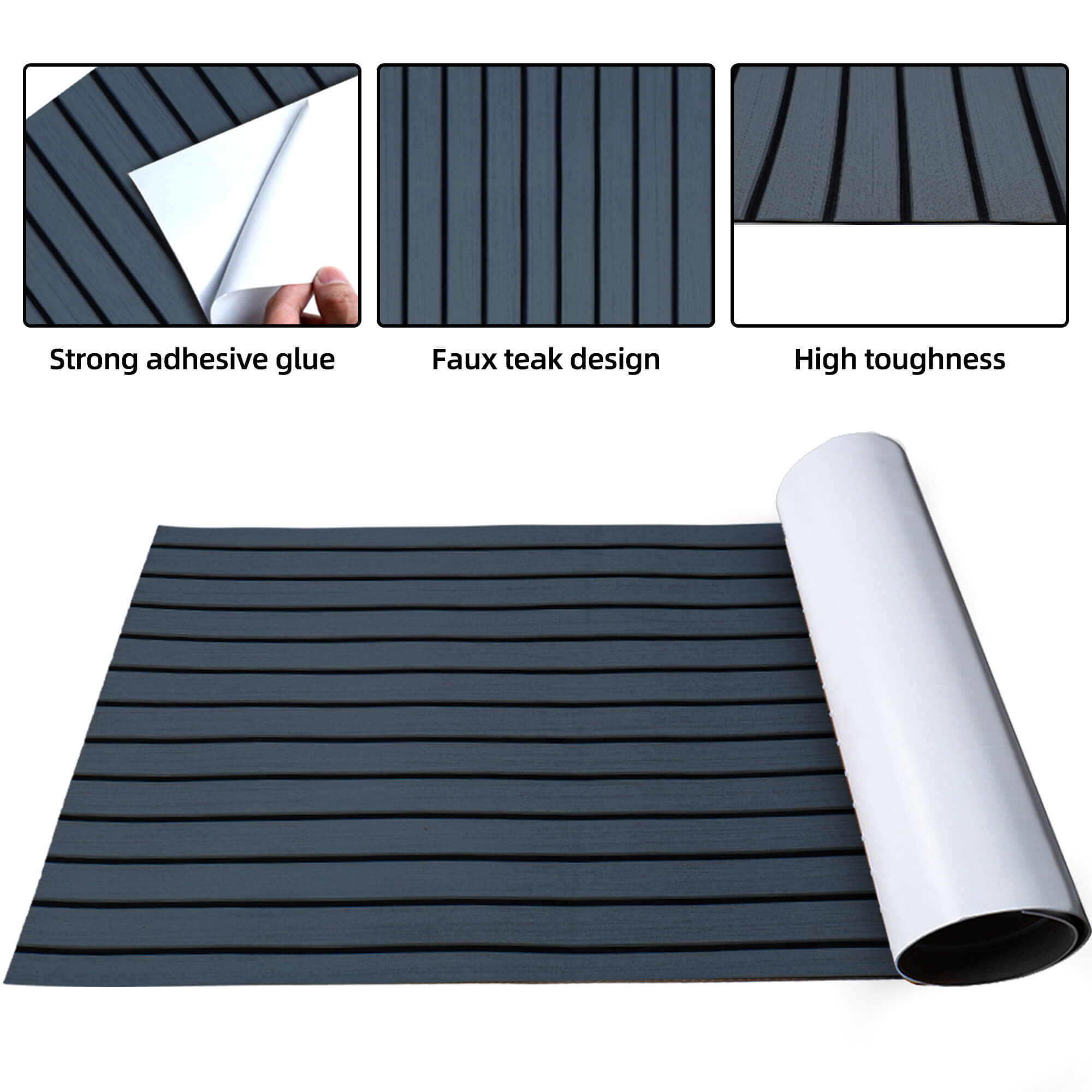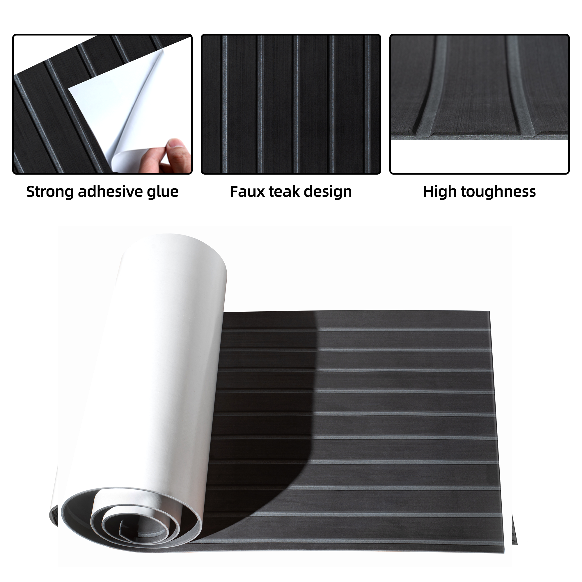 - High Quality EVA Foam - FOCEAN Boat flooring uses high-quality EVA(Ethylene-vinyl Acetate) material. High durable eva foam boat decking; Not easy deformation; Not easy to tear or damage; Not easy to fade; High density. Maintain a constant temperature, not easy to absorb heat; Odorless, non-toxic, Non-Slip marine mat; Self-Adhesive boat carpet. Hardness: 55 (±1P)
