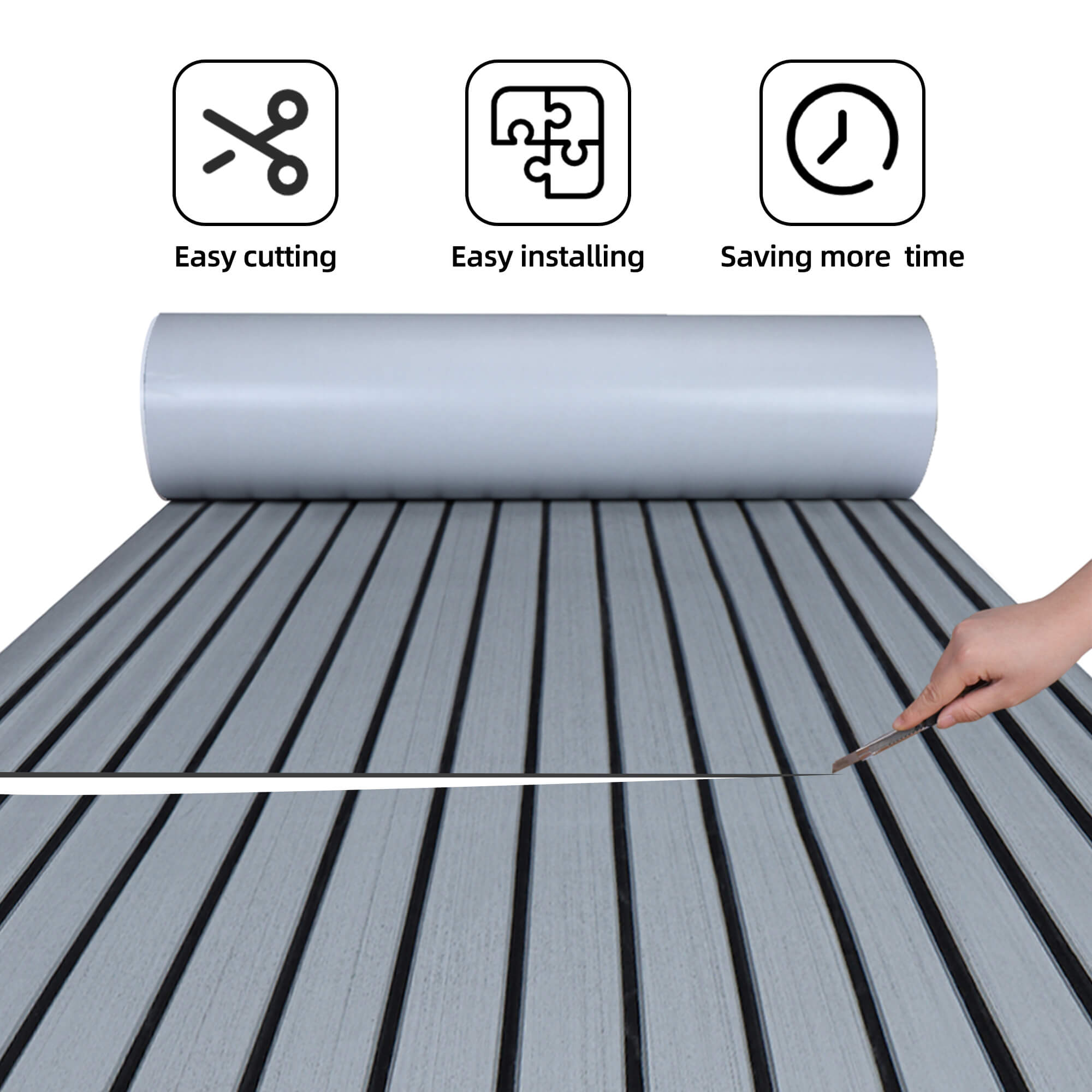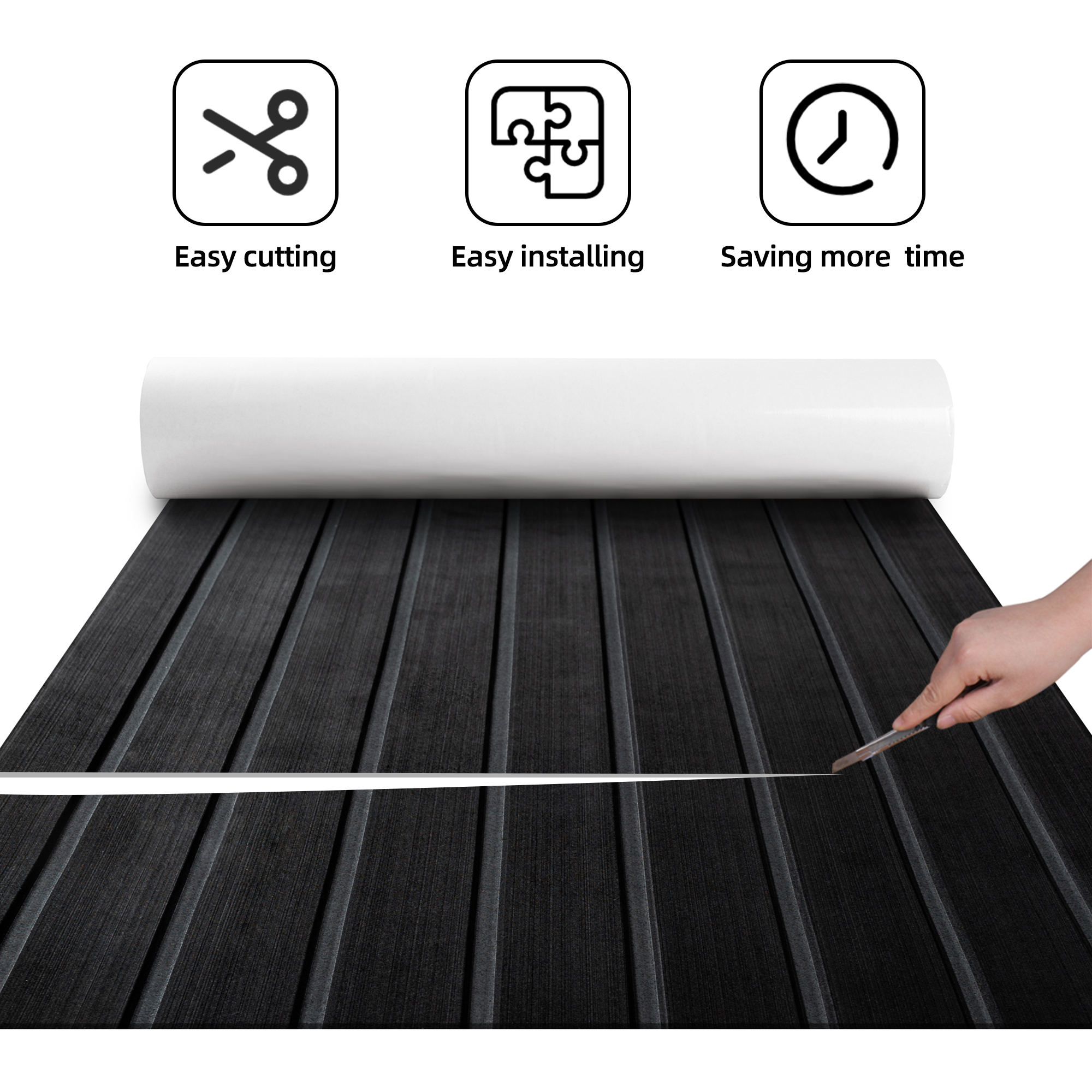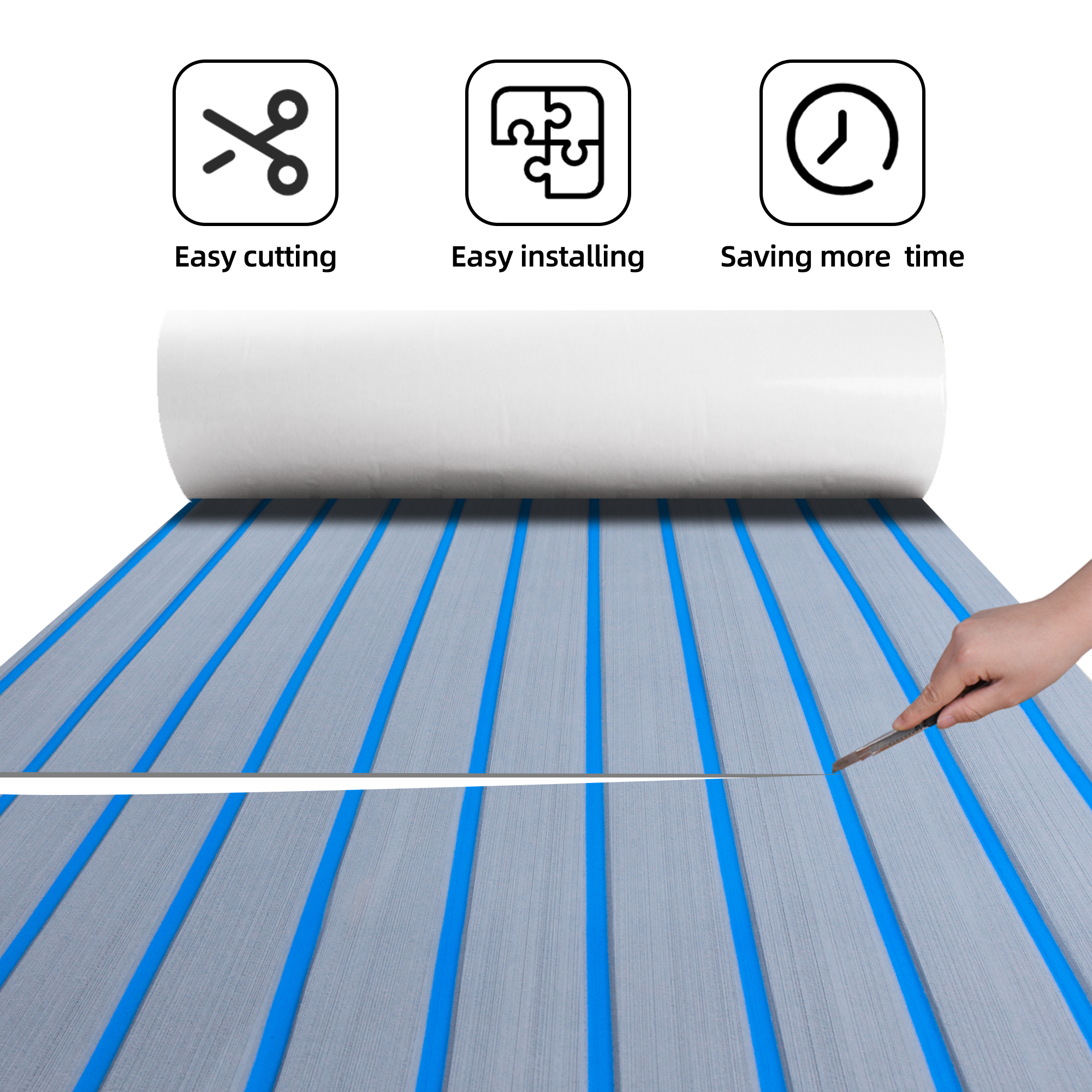 You can use a cutting tool to cut this eva foam boat flooring sheet to any size for installation, with strong glue on the back (please keep the installation site clean). Very easy to cut and hard to fall off after cutting, and it is flat and beautiful. You can enjoy DIY with this marine flooring materials.