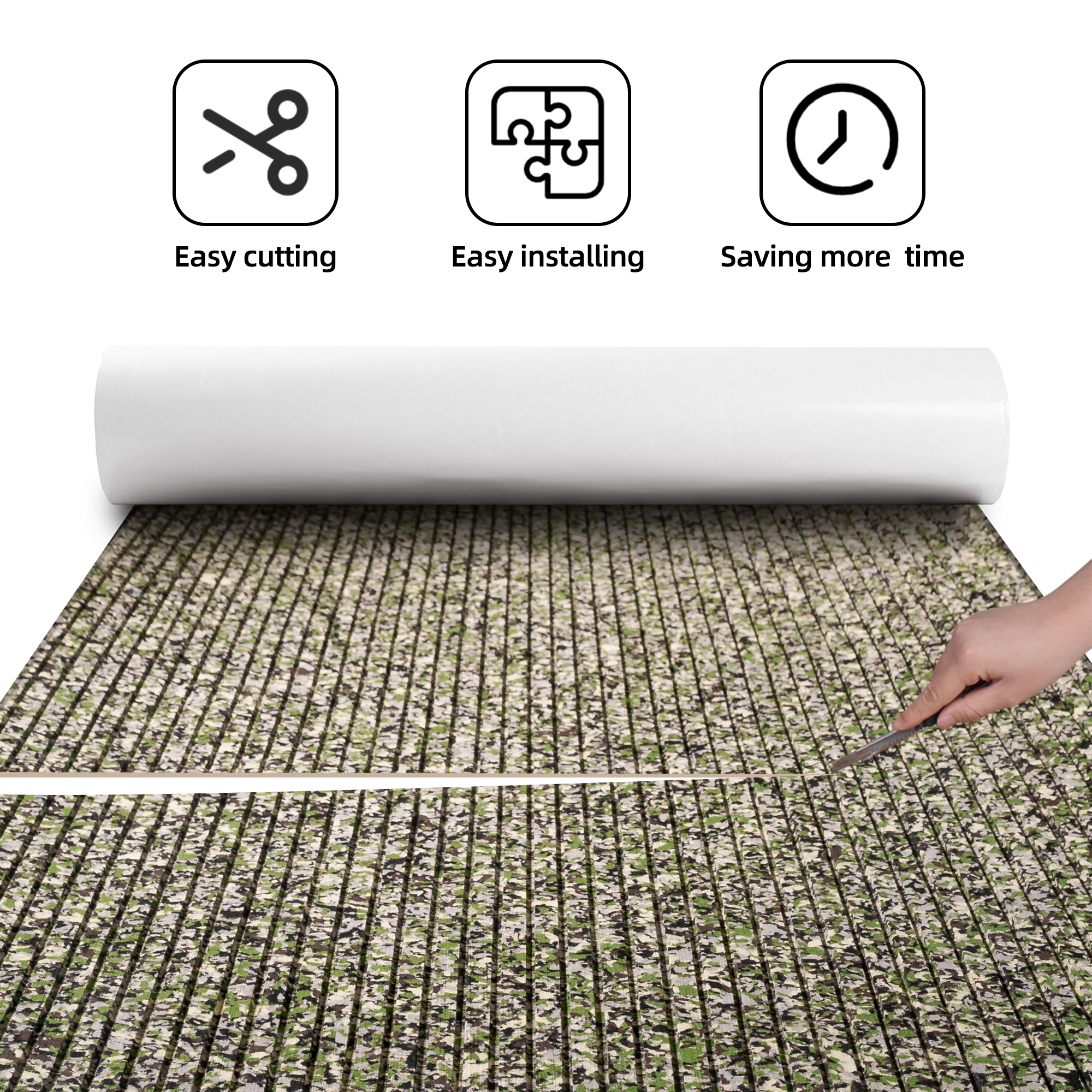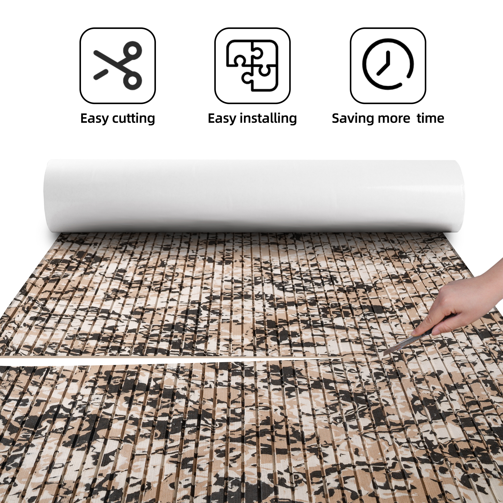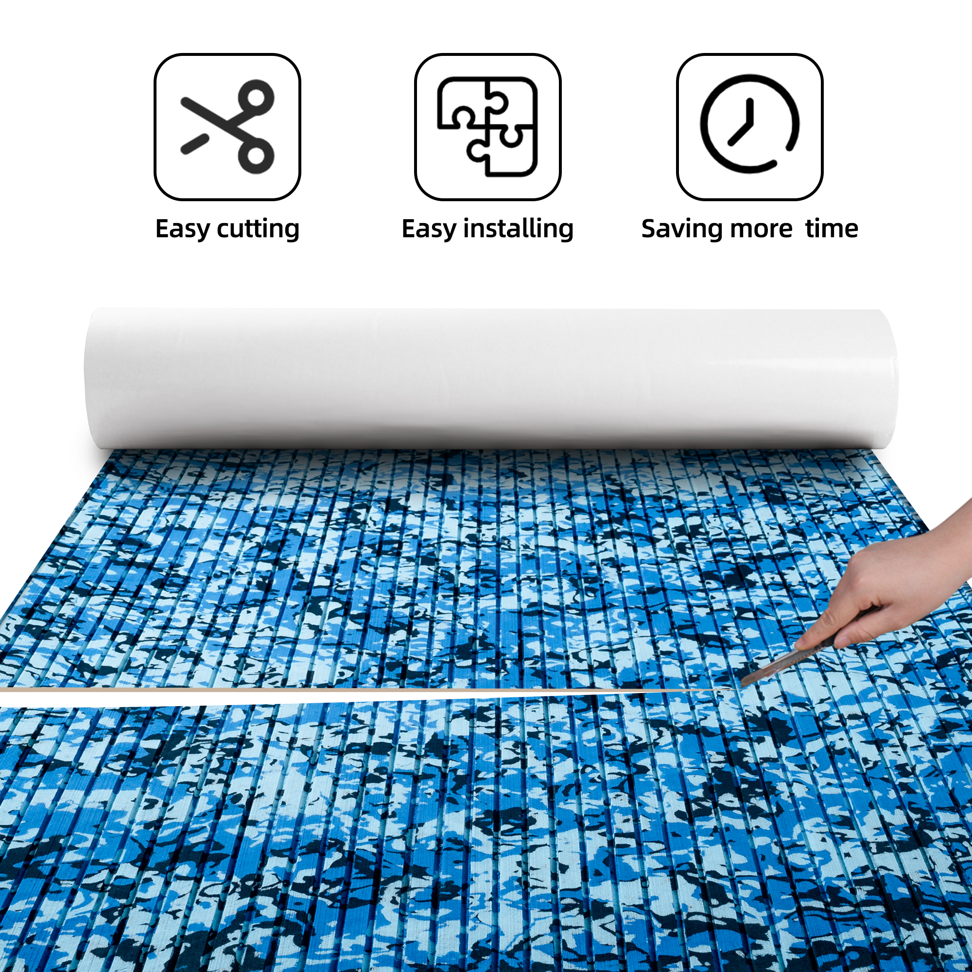 You can use a cutting tool to cut this eva foam boat flooring sheet to any size for installation, with strong glue on the back (please keep the installation site clean). Very easy to cut and hard to fall off after cutting, and it is flat and beautiful. You can enjoy DIY with this marine flooring materials.