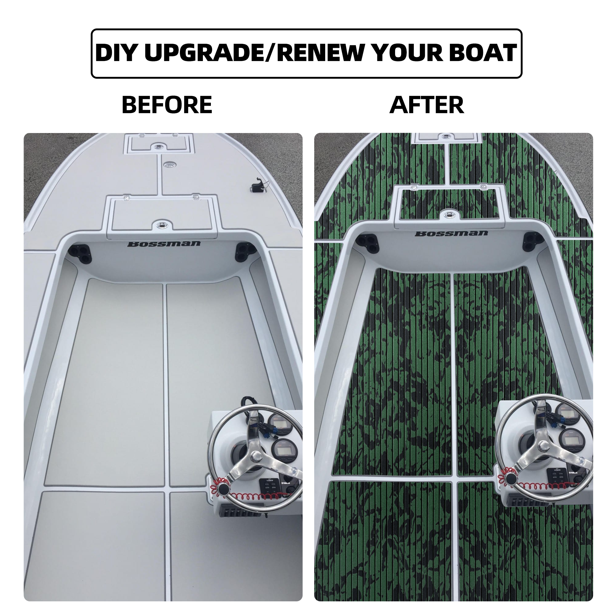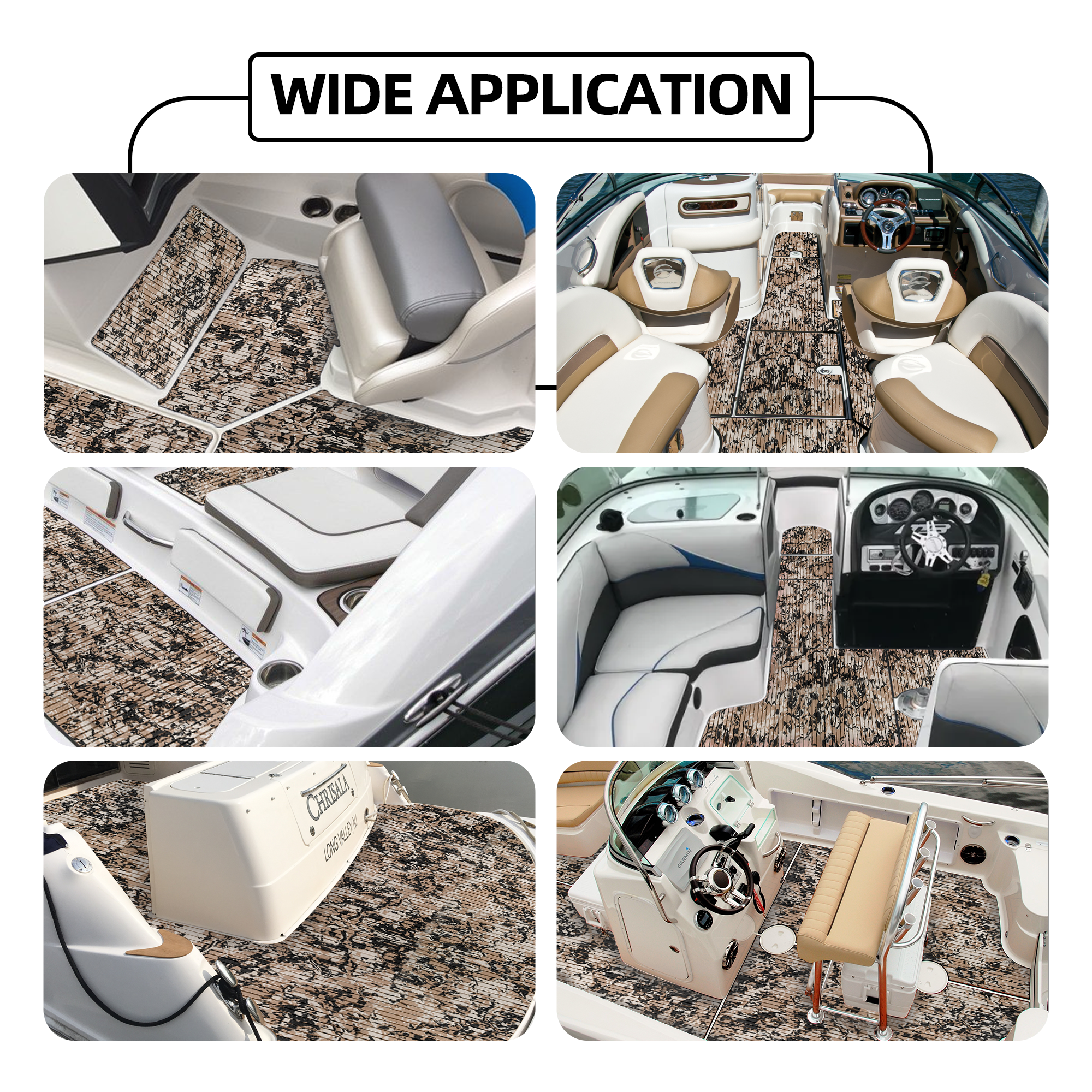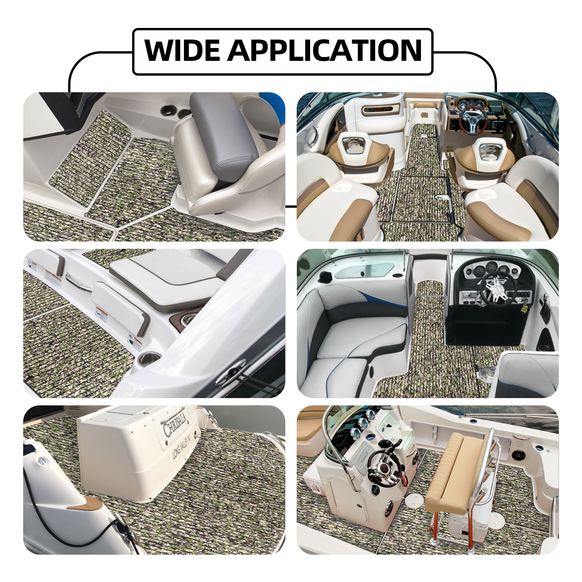 - Wide Application - Very nice boat flooring, different personalized patterns available. They are perfectly used for Motorboat, Jon Boat, RV Yacht Kayak, Surfboard, Swimming Pool, Garden flooring and etc
