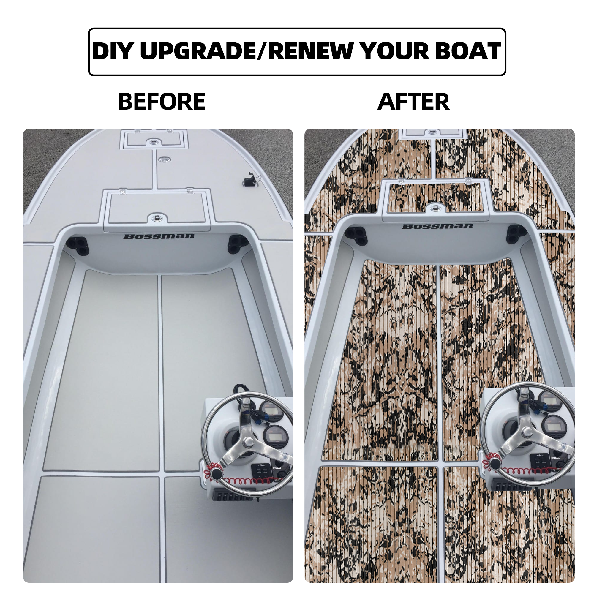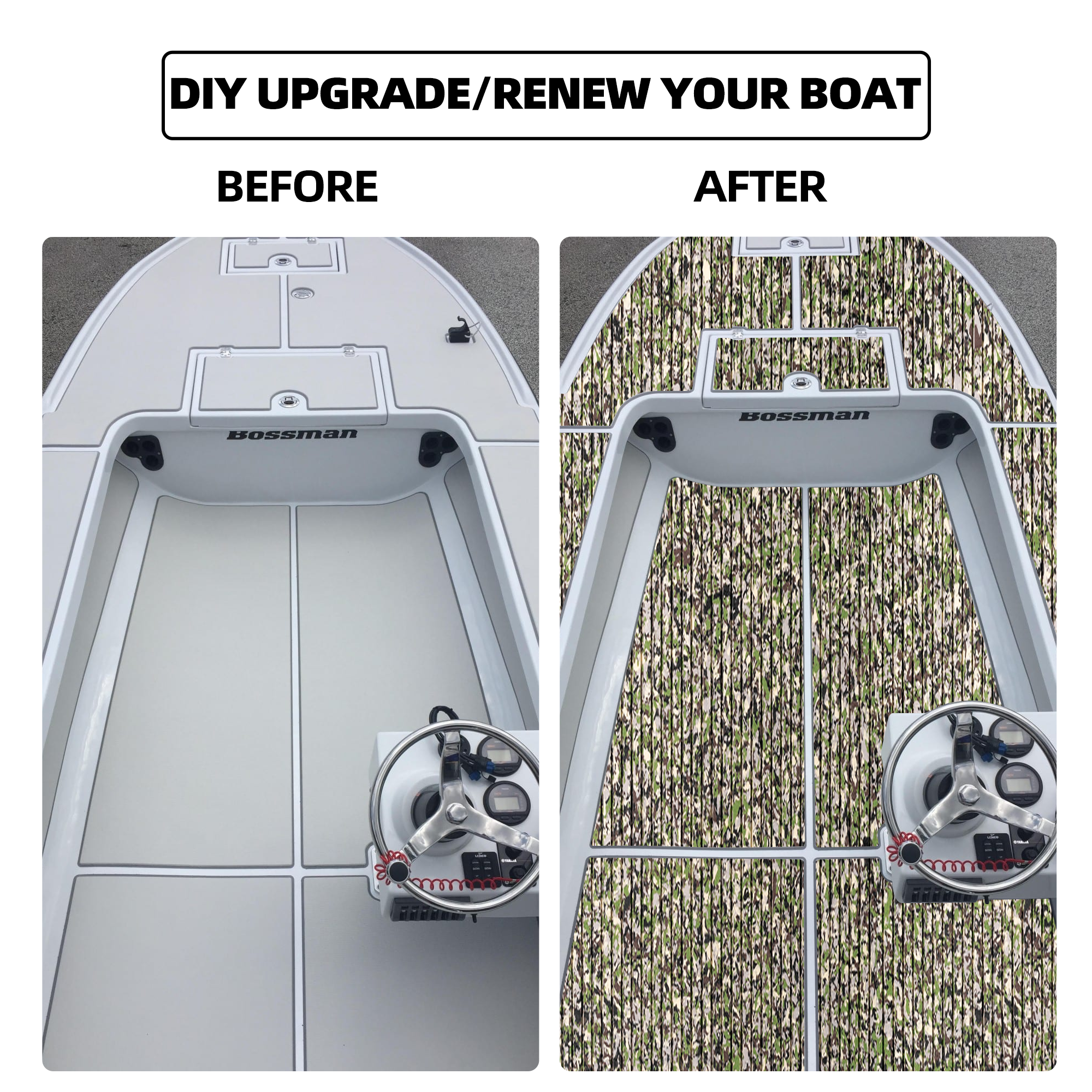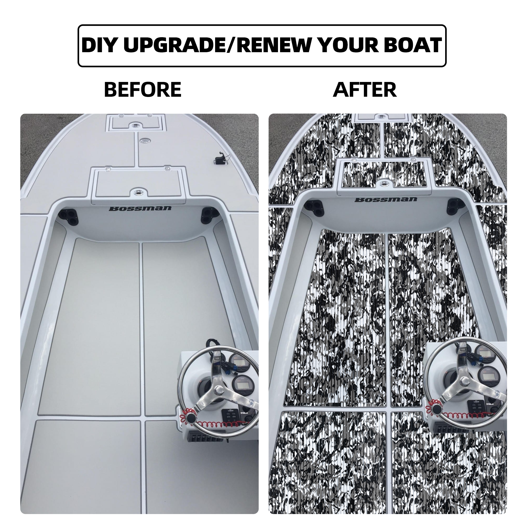 - Wide Application - Very nice boat flooring, different personalized patterns available. They are perfectly used for Motorboat, Jon Boat, RV Yacht Kayak, Surfboard, Swimming Pool, Garden flooring and etc