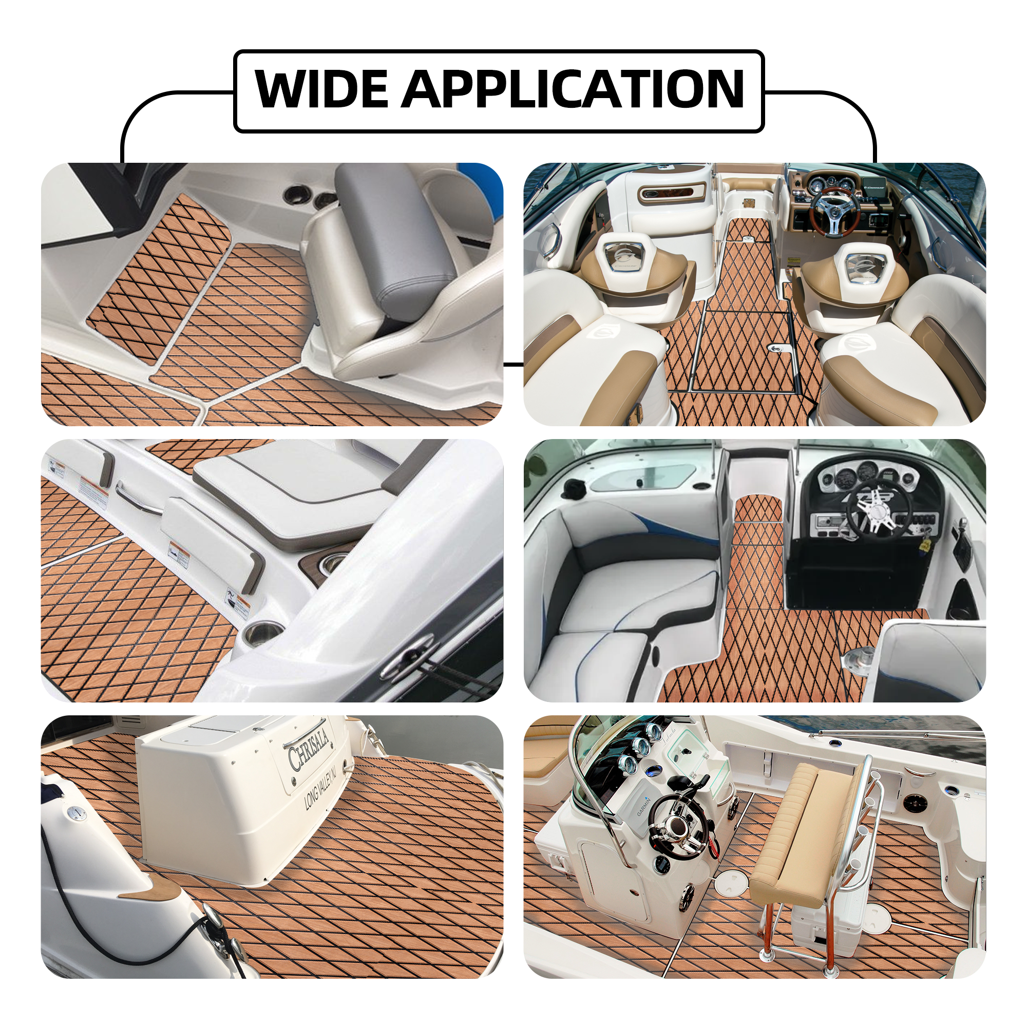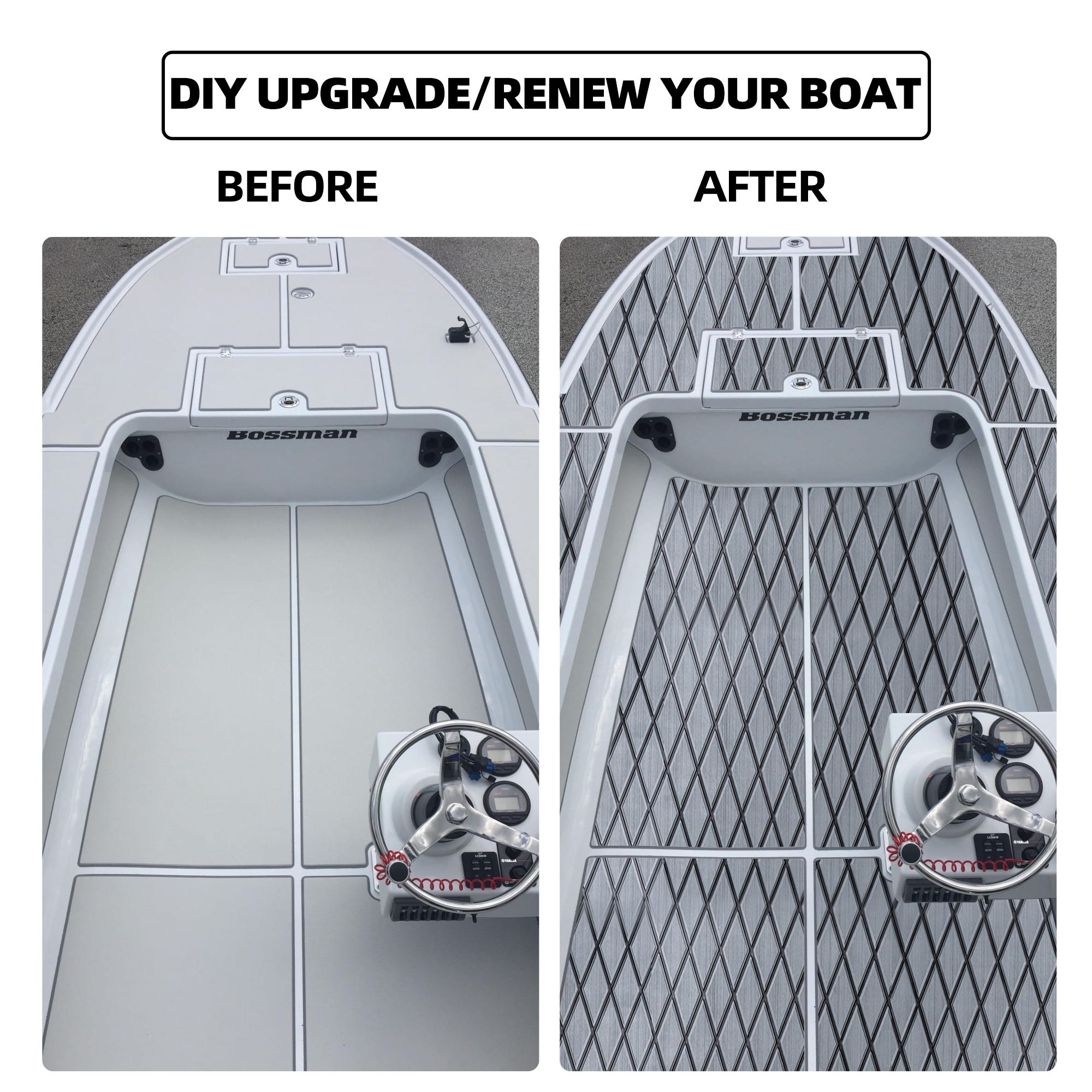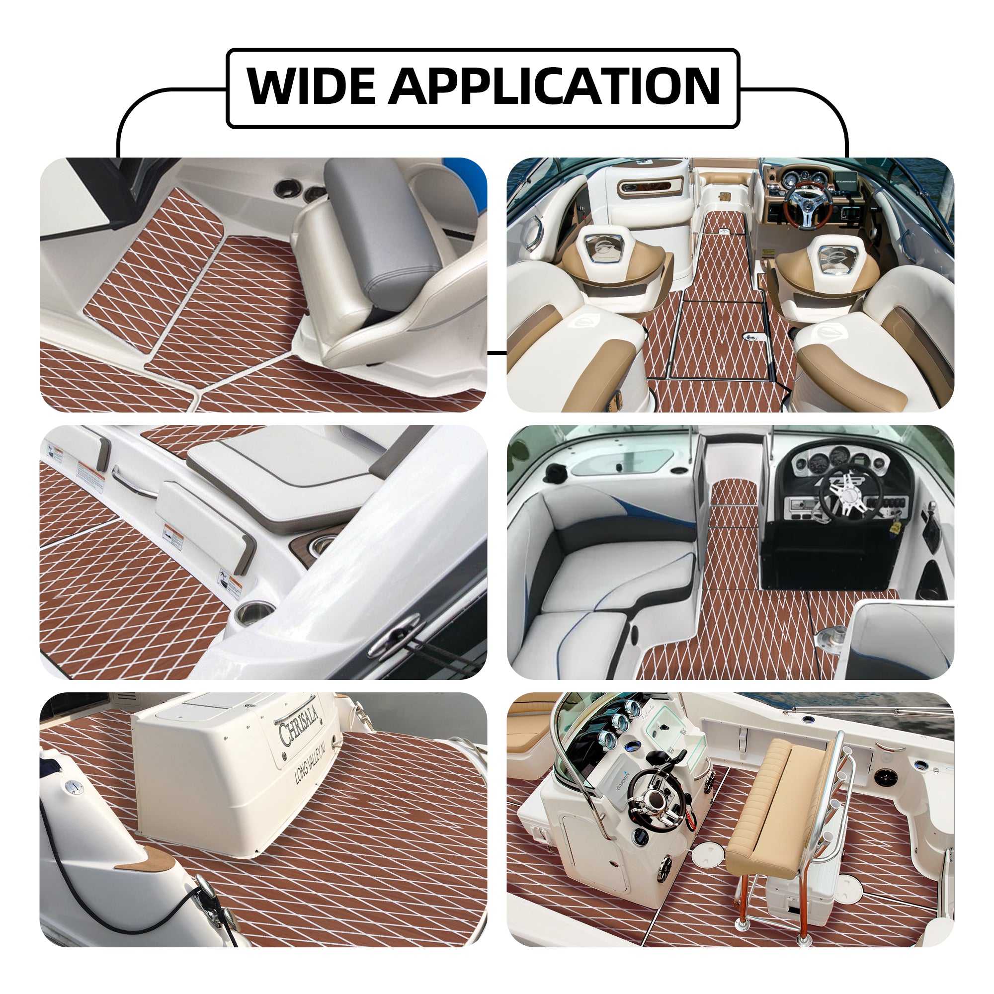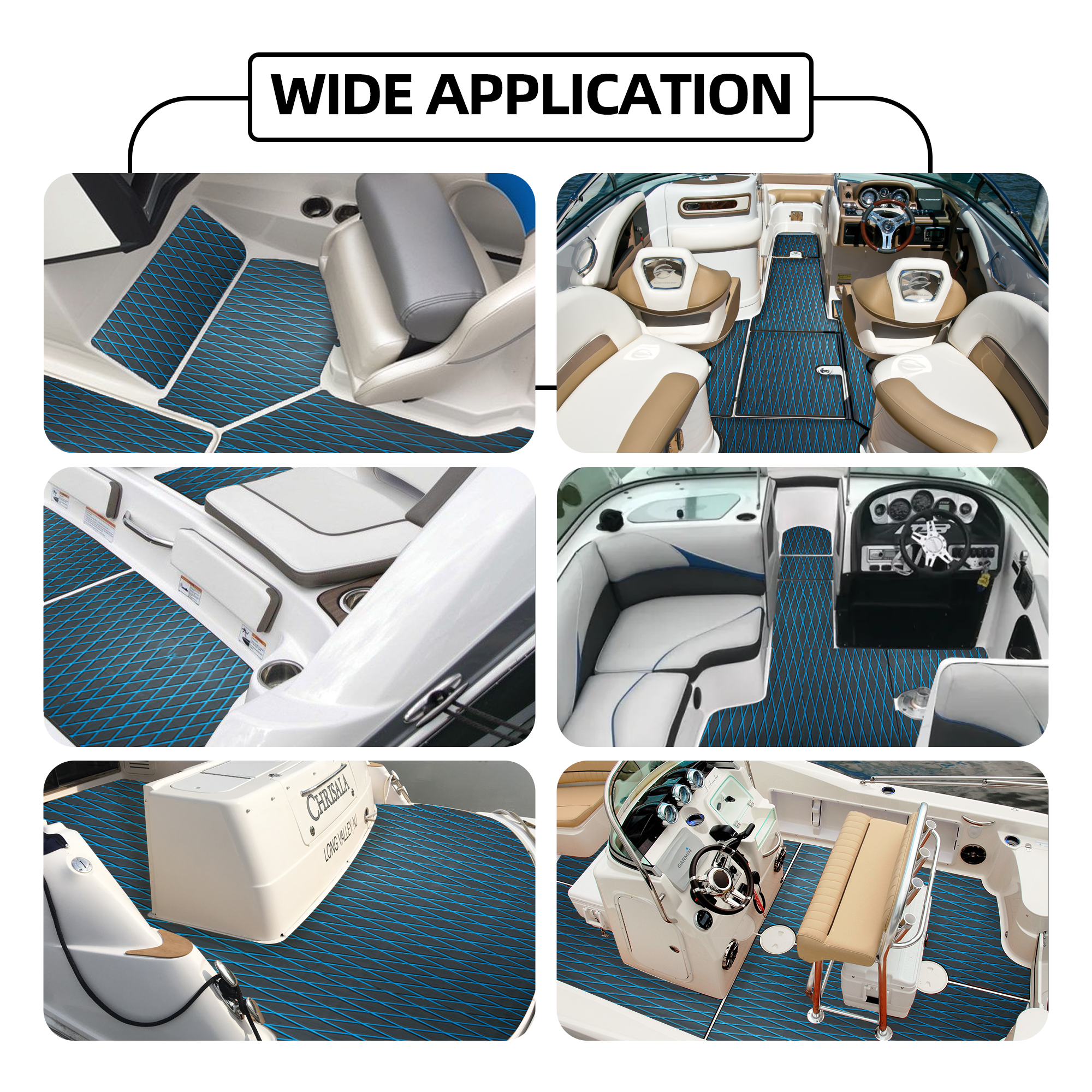 EVA (Ethylene-Vinyl Acetate) foam boat flooring is a high-density, closed-cell foam material designed for marine environments. It offers a non-slip surface, cushioning underfoot, and resistance to UV rays, saltwater, and general wear and tear. This makes it an ideal choice for enhancing comfort and safety on various watercraft.