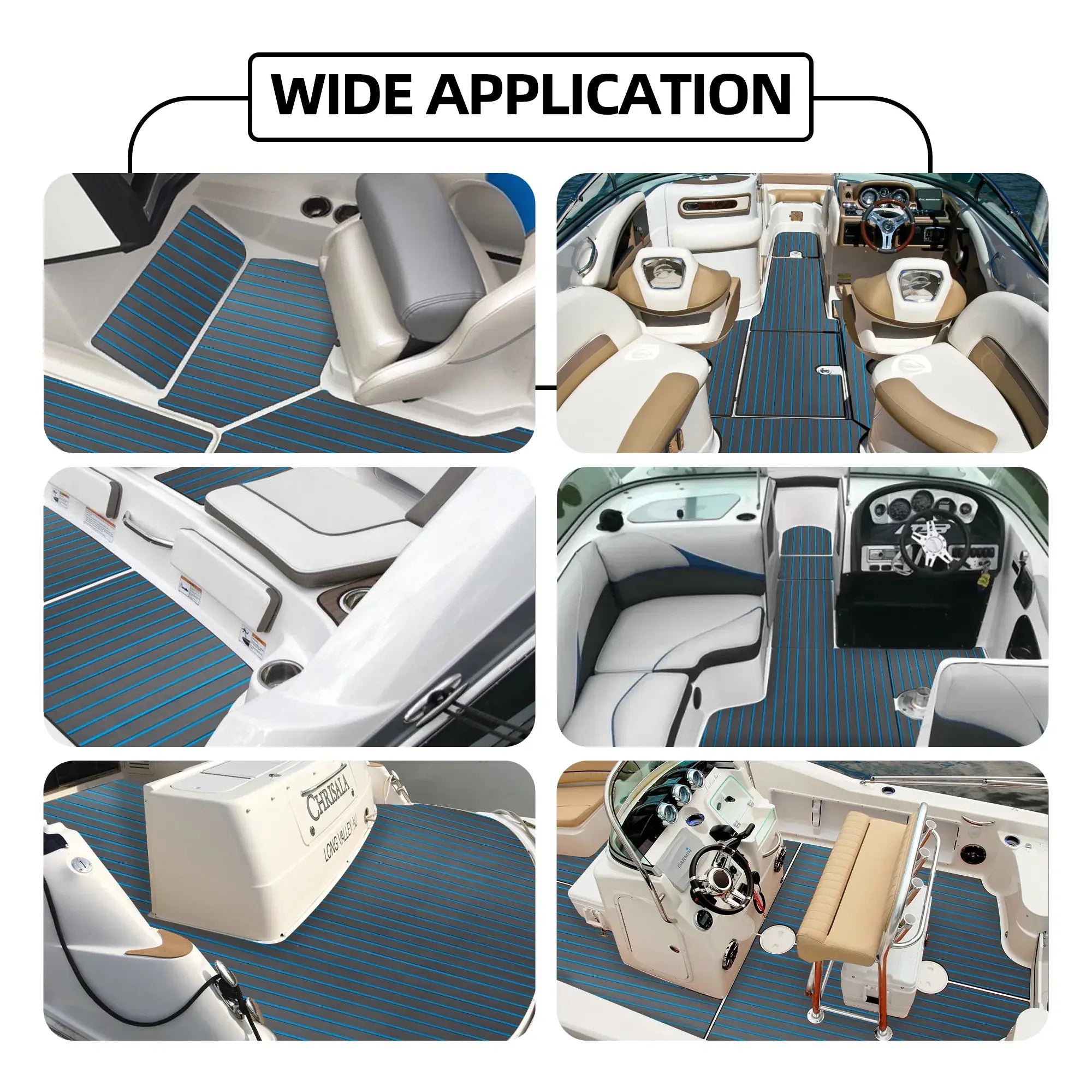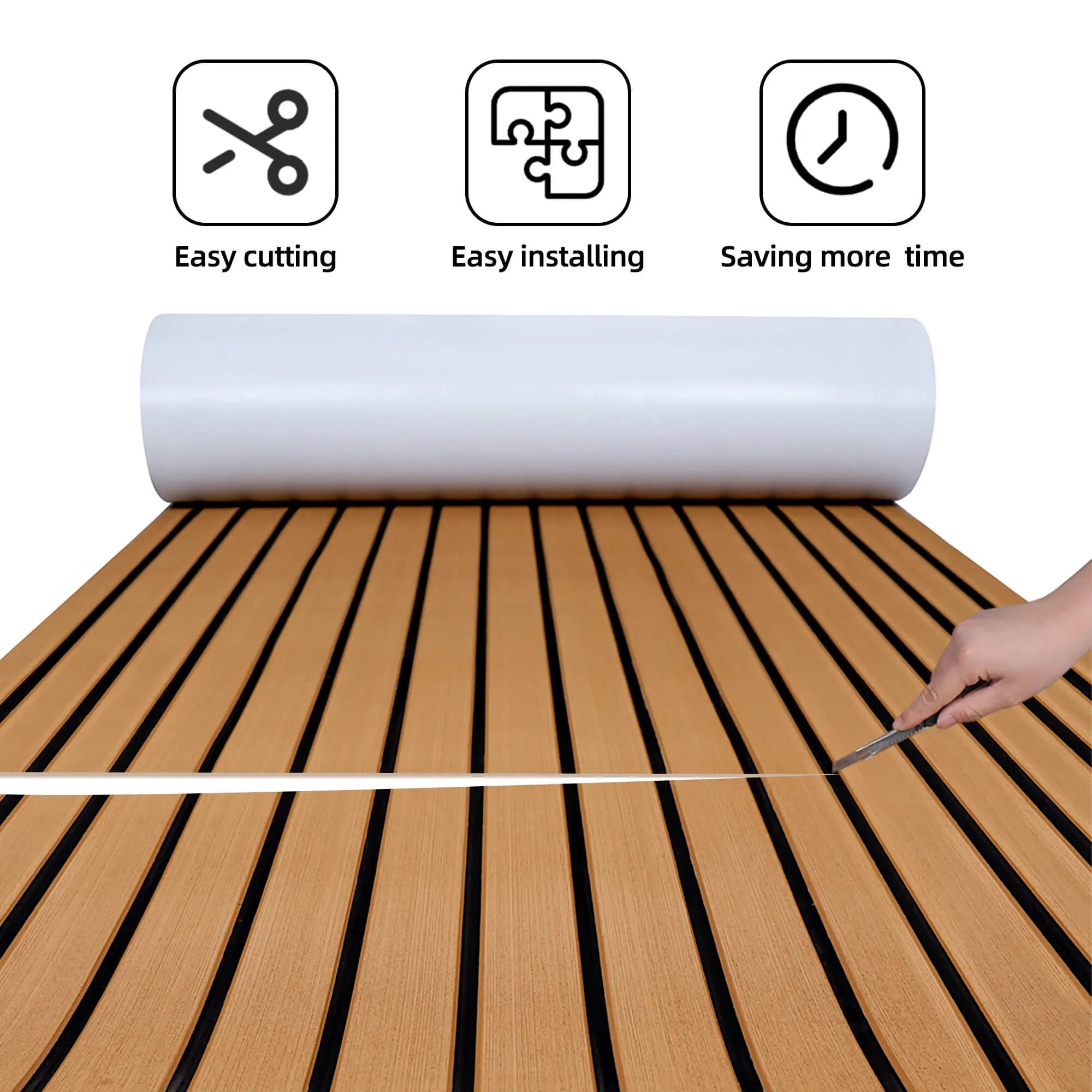 You can use a cutting tool to cut this eva foam boat flooring sheet to any size for installation, with strong glue on the back (please keep the installation site clean). Very easy to cut and hard to fall off after cutting, and it is flat and beautiful. You can enjoy DIY with this marine flooring materials.