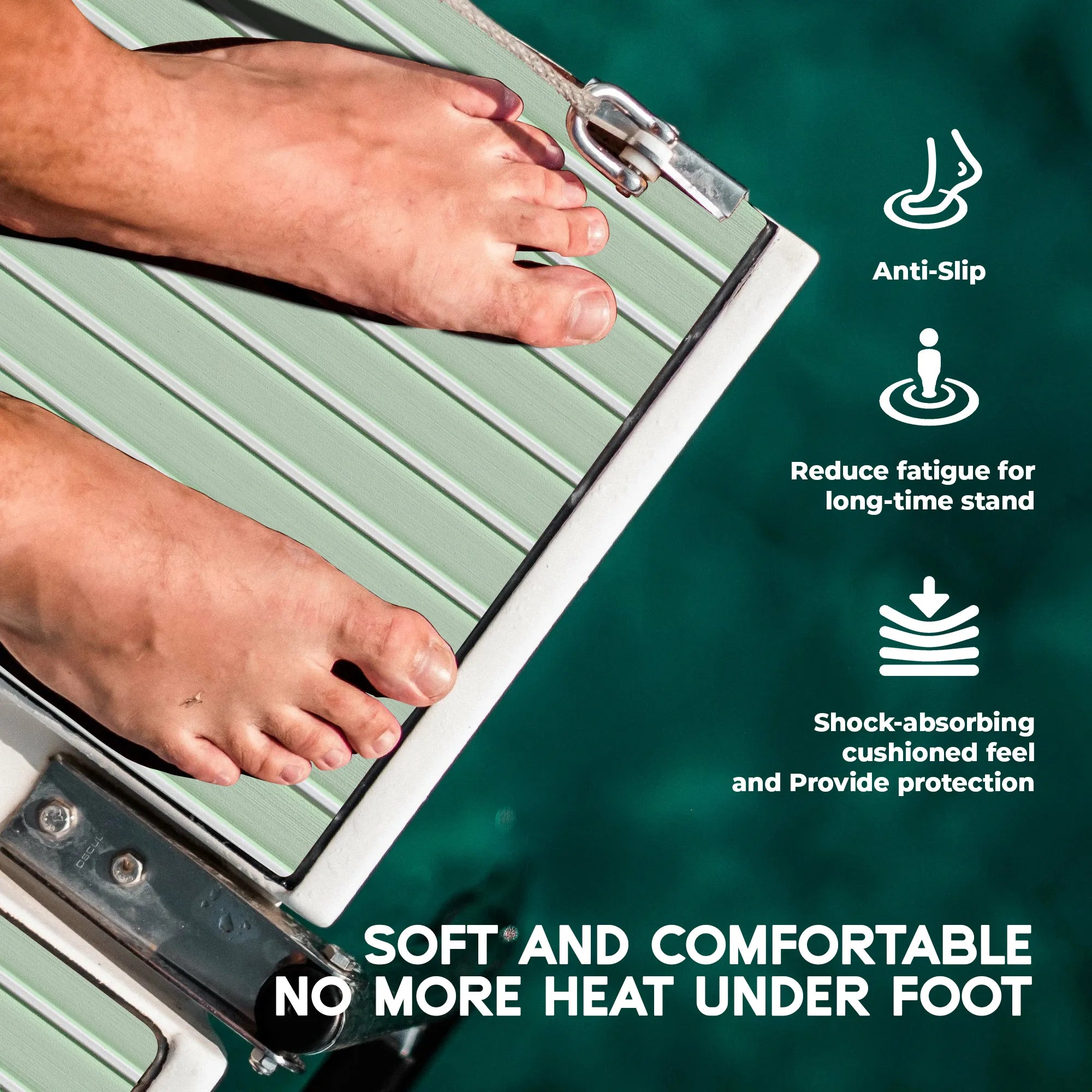 • Perfect Performance - Our EVA foam boat flooring can be easily washed with vacuum cleaner, or be pressure washed. Including: water, red wine, fish blood, sundries and anything else. Good resistance to salt water and not easy to absorb heat. Fully combining ergonomic principles to design will definitely give you an excellent experience